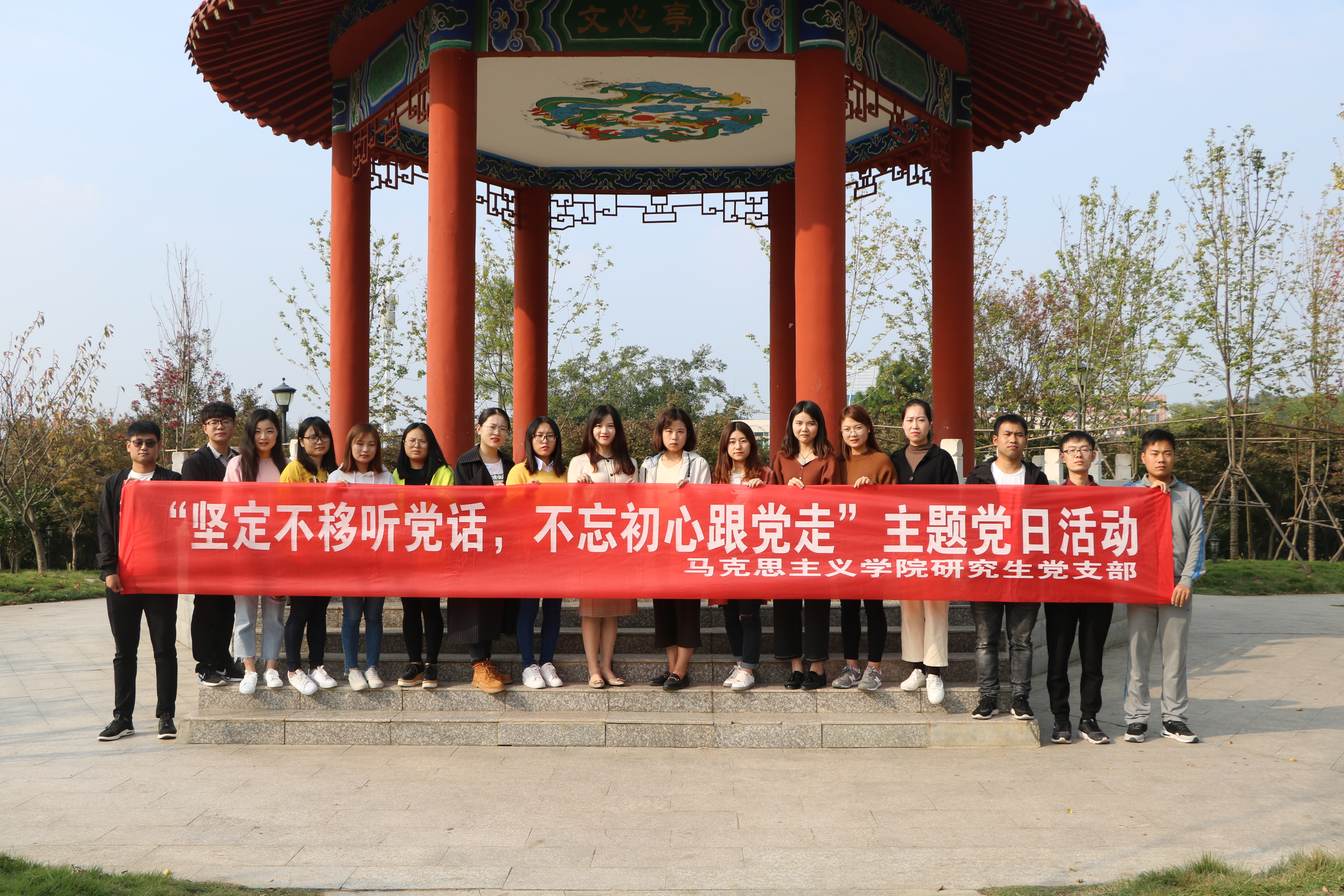 为进一步推动学院“两学一做”学习教育活动深入开展,增强研究生对党的理论政策的了解,10月16日下午,德赢官网研究生党支部在文心亭开展了“坚定不移听党话,不忘初心跟党走”主题党日活动。全体支部成员和广大同学热情地参加了活动。