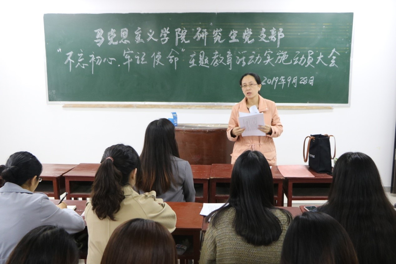 9月28日下午,德赢官网研究生党支部在教五楼201教室召开“不忘初心,牢记使命”主题教育活动实施方案动员大会,全体研究生党员和入党积极分子参加大会。会议由研究生党支部书记卢云晓主持。