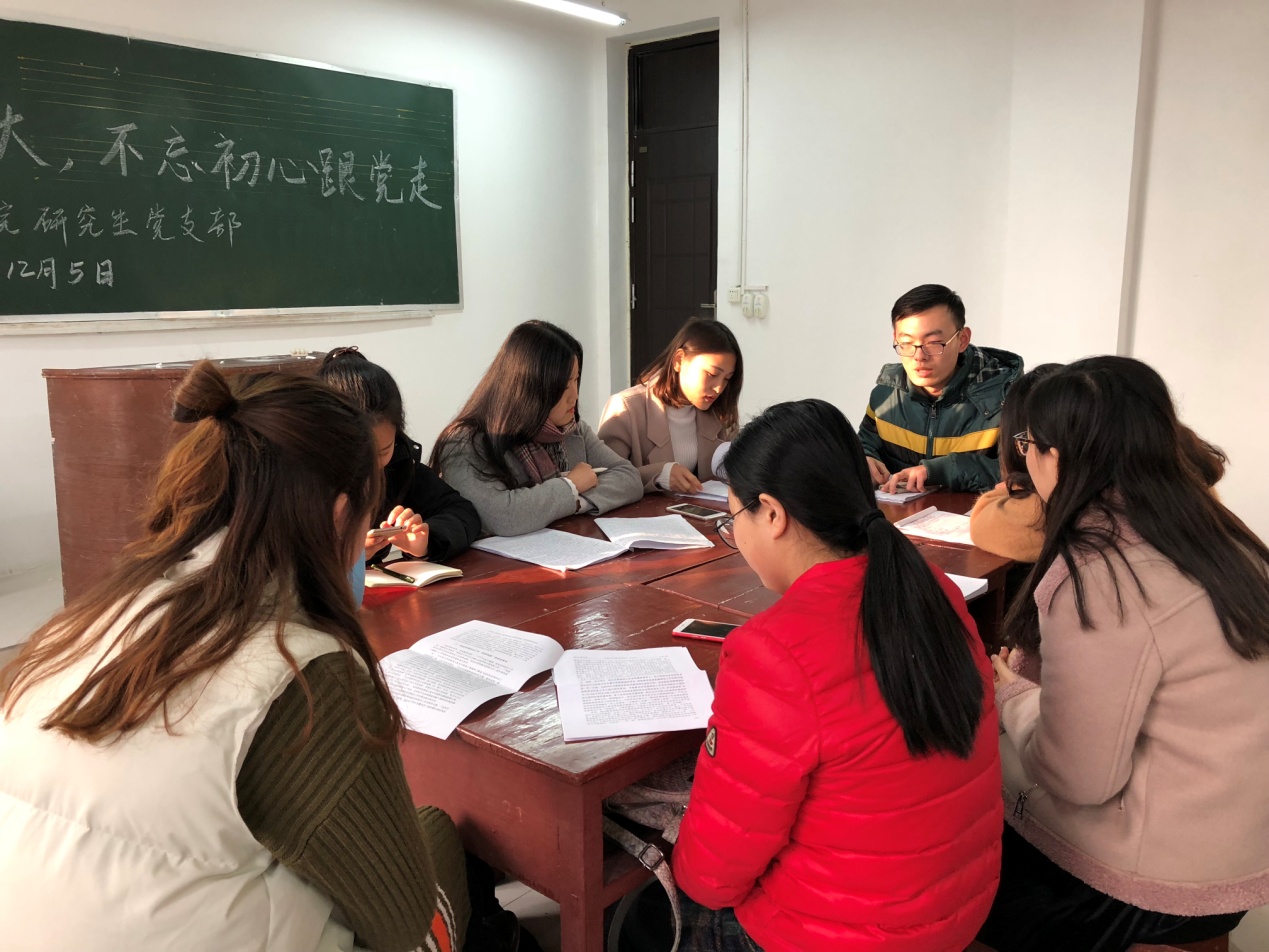 为进一步深入学习领会十九大报告精神,德赢官网研究生党支部于2017年12月5日下午在教五楼201教室开展“青春践行十九大,不忘初心跟党走”之十九大报告学习交流座谈会,支部全体党员以及部分入党积极分子积极参加。
