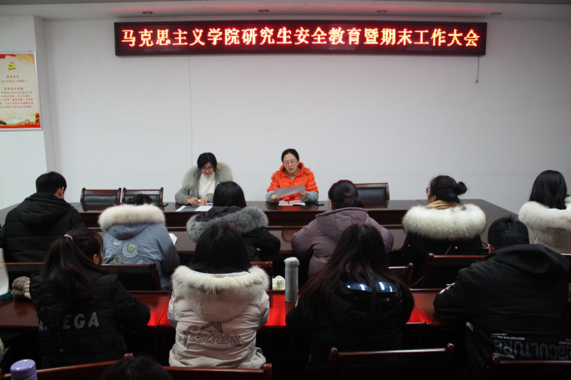2019年12月25日,为加强研究生安全防范意识,自觉遵守校规校纪考纪,德赢官网在323会议室召开关于安全教育以及期末工作的会议,研究生教学秘书卢云晓和班主任郑晨霞及全体研究生参加了此次会议。