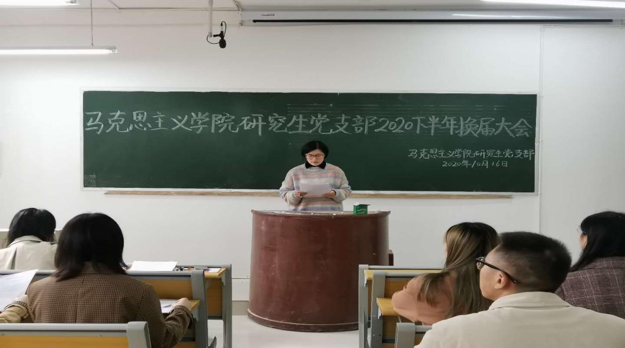10月16日下午,德赢官网研究生党支部换届选举大会于教五楼201教室隆重召开,全体支部党员参加了本次大会。大会由研究生党支部书记郑晨霞主持。