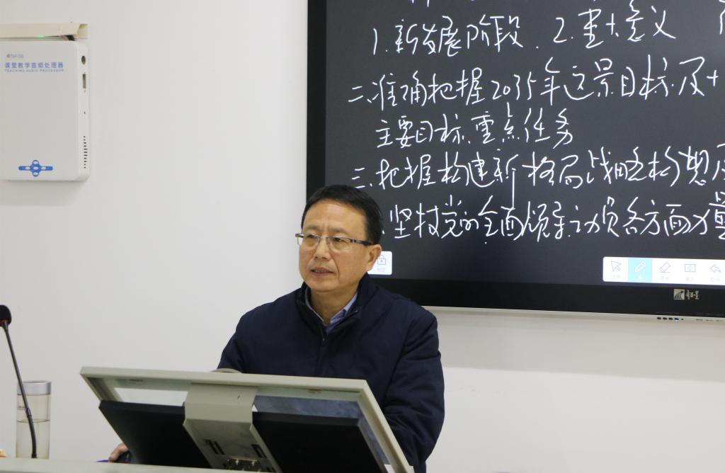 11月24日下午四点,为使研究生深刻领会十九届五中全会精神,把握好新发展阶段的时代要求,学院特邀请德赢官网党委书记唐国战教授为研究生做专题辅导,讲座在教五楼203教室进行。卢云晓主持,全体研究生聆听了报告。