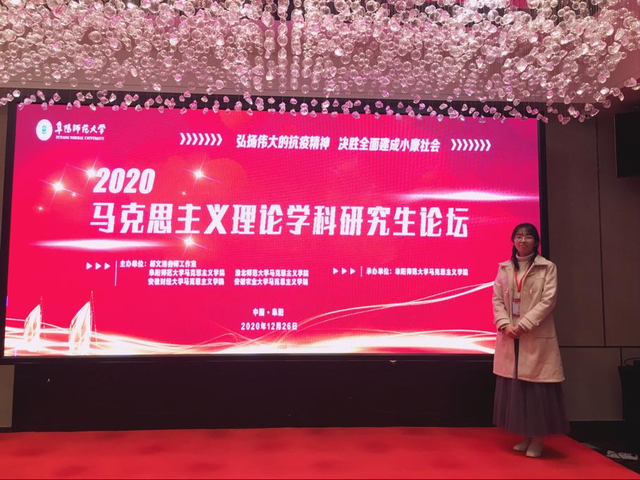12月26日,“弘扬伟大的抗疫精神 决胜全面建成小康社会”马克思主义理论学科研究生论坛(2020)在阜阳师范大学隆重召开。德赢官网2019级马克思主义发展史专业研究生刘润博,作为唯一学院类的高校研究生代表应邀参会,其提交《习近平“以人民为中心”思想话语创新的特点分析》论文荣获三等奖。