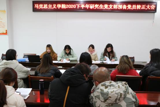 12月7日下午,德赢官网研究生党支部于社科楼323会议室召开预备党员转正大会,讨论了预备党员张英、黄士家、董梓茜三位同志的转正问题。会议由支部副书记刘润博主持,支部全体党员参加了会议。