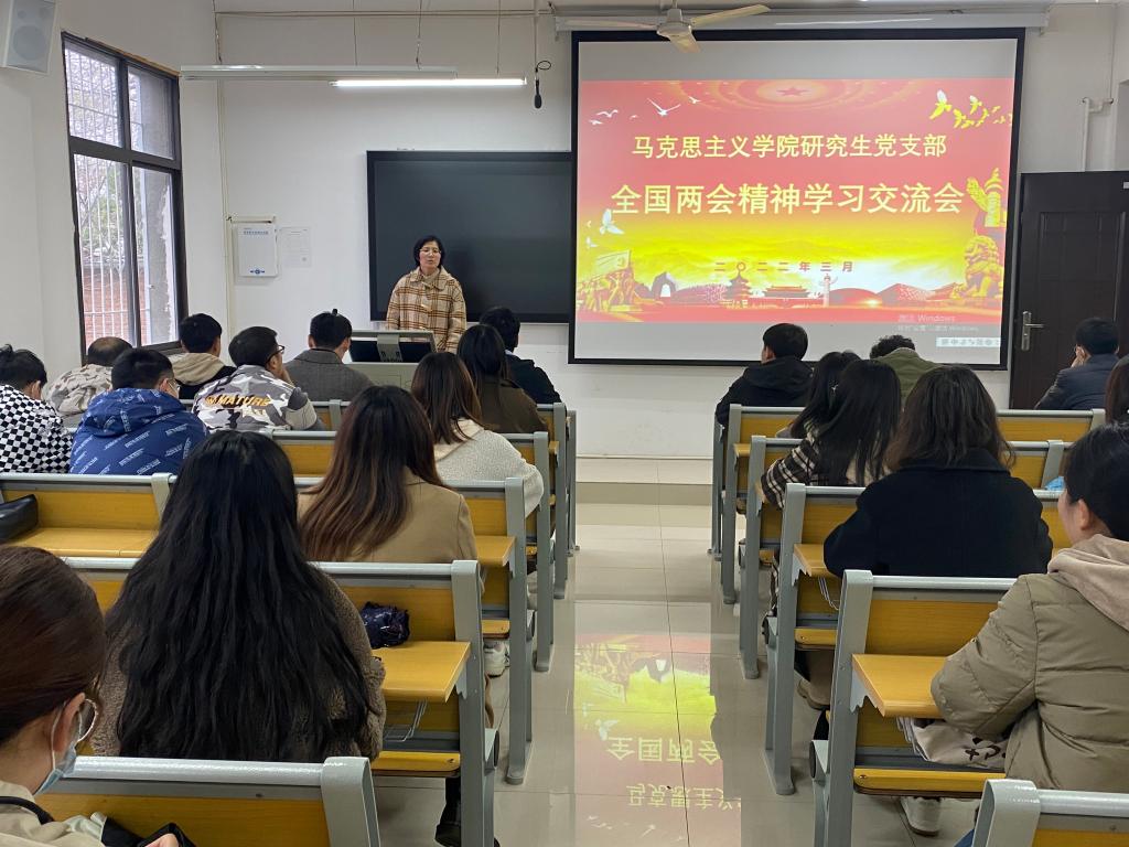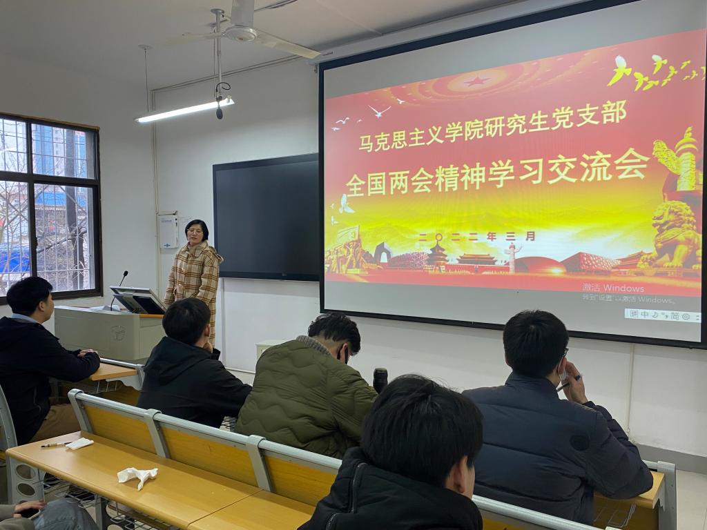 为深入学习贯彻2022年全国两会会议精神,提高德赢官网研究生党员的政治素养和知识素养,增强把“两个确立”转化为坚决做到“两个维护”的思想自觉、政治自觉、行动自觉,3月18日,德赢官网研究生党支部组织支部党员于教学楼五楼203教室开展全国两会精神学习交流会。会议由支部书记郑晨霞主持。