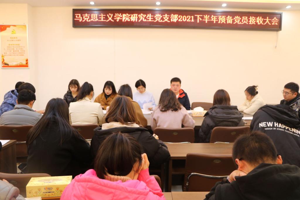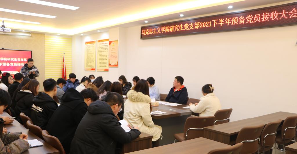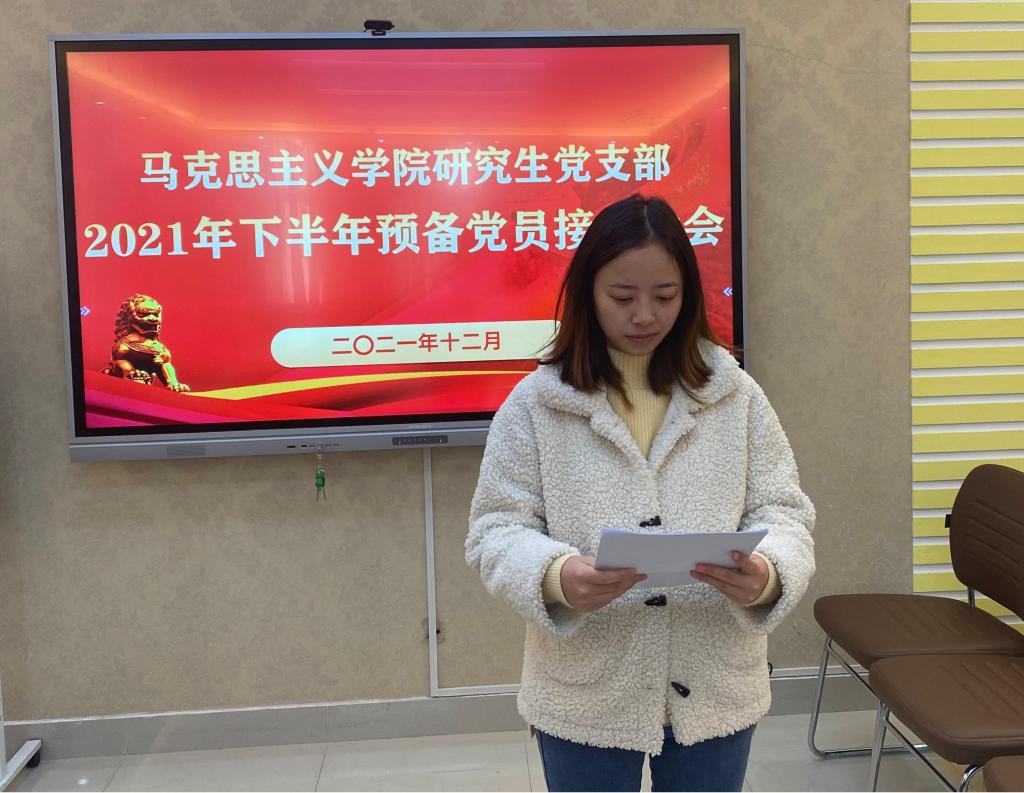 12月2日下午,德赢官网研究生党支部于社科楼323会议室召开2021下半年预备党员接收大会,讨论了王浩、李婷婷、余海玲、张丹雅、张紫鑫、周韵诗、孟祥琳、郭倩、崔浩婷、樊悦十位同志转为中共预备党员的问题。本次会议由支部书记郑晨霞主持,监票人由宣传委员李胜担任,计票人由小组长王澳远担任。