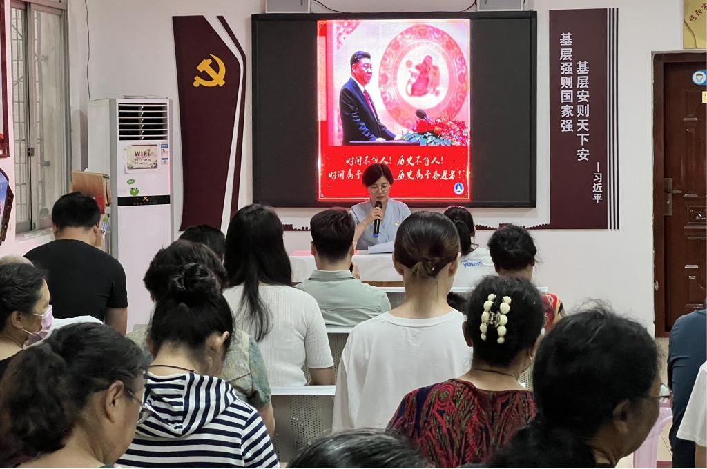 为深入学习贯彻习近平总书记系列讲话精神,提升党员同志的思想觉悟和党性修养,以良好的精神面貌迎接党的二十大胜利召开,在“七一”来临之际,德赢官网研究生党支部书记郑晨霞和支部党员鲁桐君、汤欢一同赴华森社区开展了习近平金句宣讲活动。