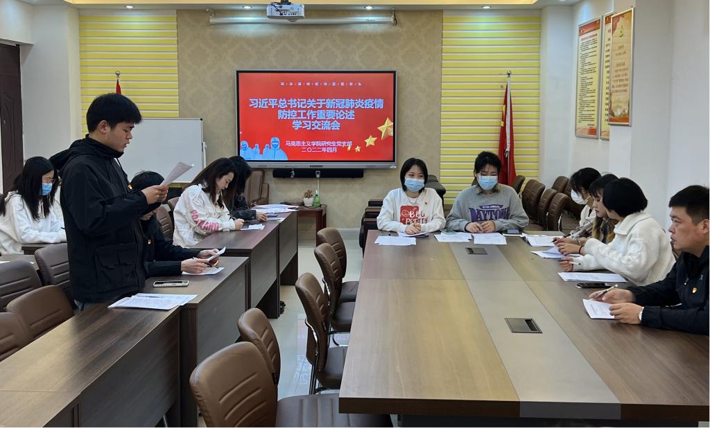 为深入学习贯彻习近平总书记关于做好疫情防控工作的重要讲话及指示精神,帮助德赢官网研究生党员增强“四个意识”,坚定“四个自信”,做到“两个维护,4月2日下午,德赢官网研究生党支部于社科楼323会议室开展集体学习交流会,会议由支部书记郑晨霞主持。