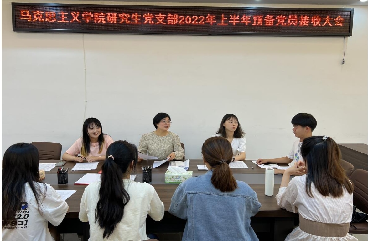 5月31日,德赢官网研究生党支部于社科楼323会议室召开2022年上半年预备党员接收大会,讨论了余欢欢、张蒙蒙、赵子剑、赵婧同、陶小颍、郭婉如、 喻泳成、葛鸿萍八位同志转为中共预备党员的问题。会议由支部书记郑晨霞同志主持,彭燕担任监票人,王澳远担任计票人。