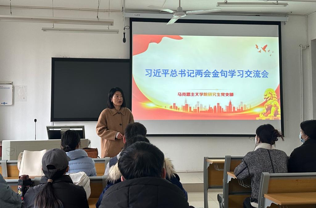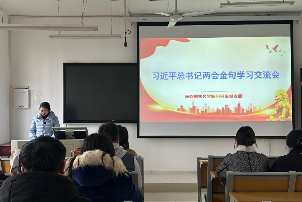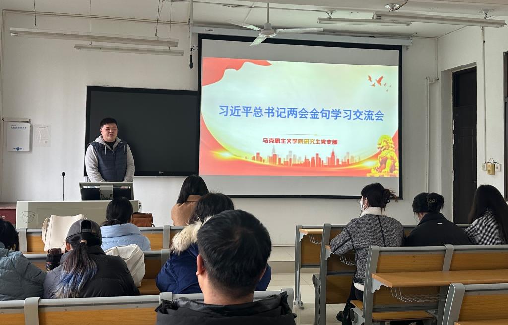 为传达学习贯彻习近平总书记在全国两会上的重要讲话和全国两会精神,深入交流学习体会,德赢官网研究生党支部于3月21日下午在教五楼203开展了集体学习交流会,会议由支部副书记朱海军同志主持。