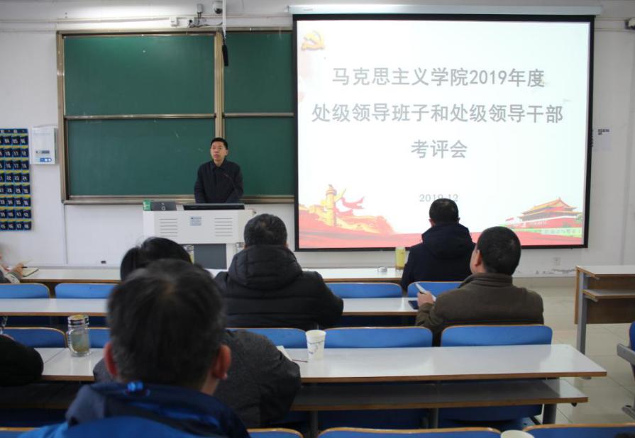 12月26日下午,德赢AC米兰官网在社科楼516教室举行了2019年度处级领导班子和处级领导干部考评会。信阳师范学院处级领导班子和处级领导干部2019年度考核工作领导小组第三考核组组长林兴岚及考核组成员汪霞、李奎参加会议。会议由学院党委书记唐国战主持。