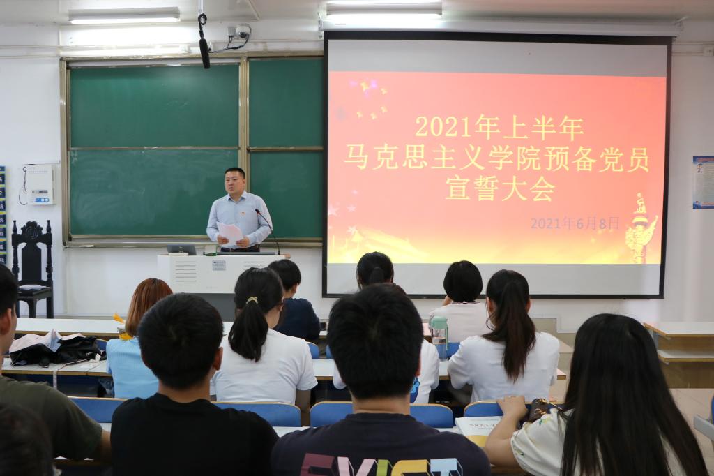 6月8日下午,德赢官网2021年上半年预备党员宣誓大会在社科楼514教室举行。学院党委副书记何晓坚、学生党支部书记、预备党员和部分入党积极分子共同参与此次大会。会议由预备党员王明亮主持。