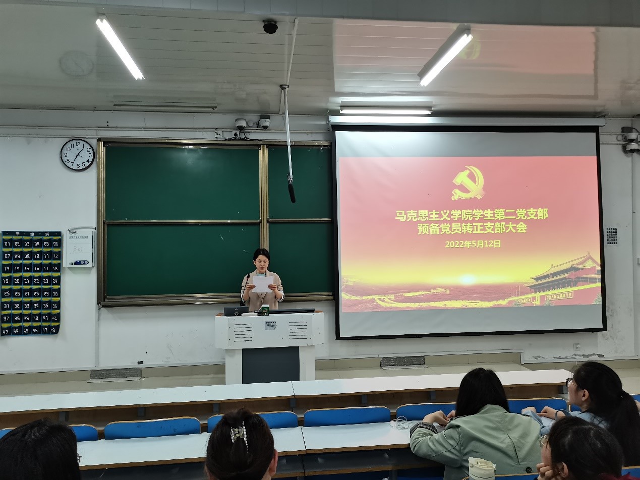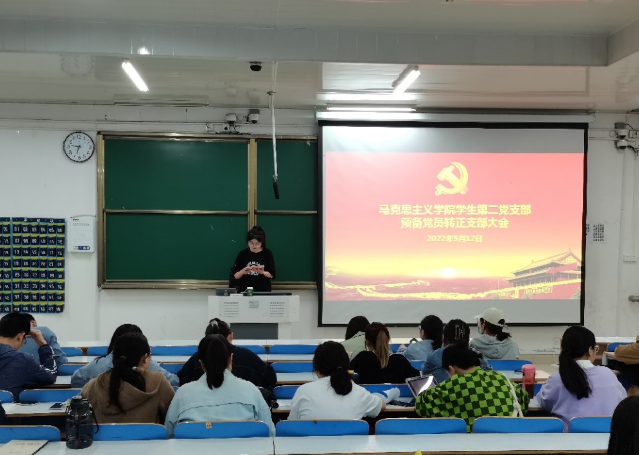 5月12日下午,德赢AC米兰官网2022年上半年学生第二党支部预备党员转正支部大会在社科楼516教室召开。德赢官网学生第二党支部支部正式党员曹栋、任婷、杨康、王文慧、黄子晋、张甜甜、贾思琦、耿晗、李静、席妞,学生第二党支部预备党员共同参加本次会议。会议由王文慧主持。