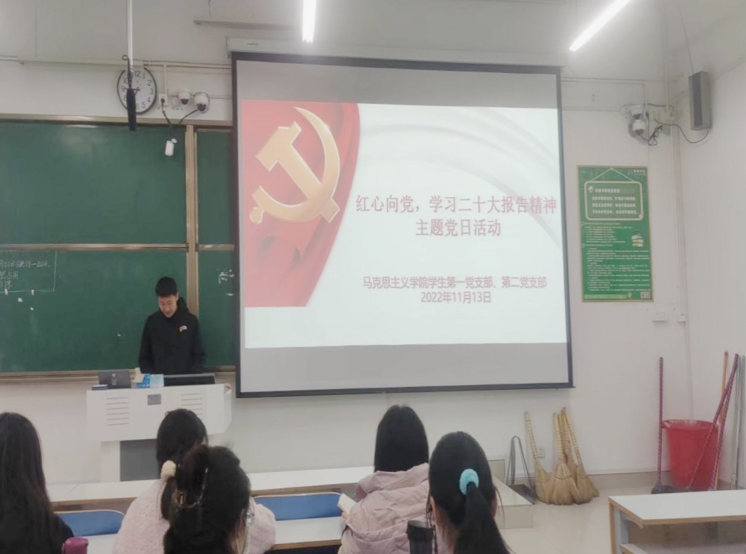 11月23日下午,德赢AC米兰官网学生第一党支部、第二党支部在社科楼414教室开展“红心向党·学习二十大报告精神”主题党日活动。学生第二党支部全体党员参加此次活动。会议由于嘉宁同志主持。