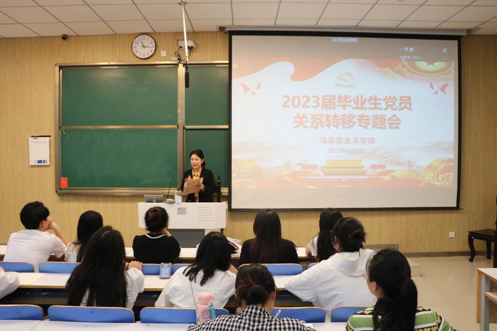 6月6日上午,德赢AC米兰官网在社科楼515教室召开2023届毕业生党员关系转移专题会。学院专职组织员任婷、分团委副书记安聪以及2023届本科、研究生毕业生党员共同参加会议。会议由安聪主持,采用线上线下相结合的方式。