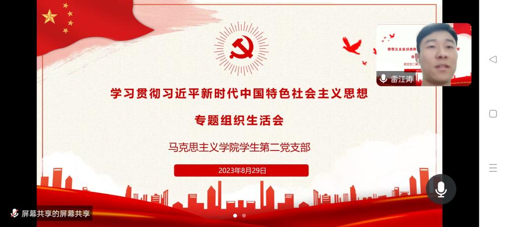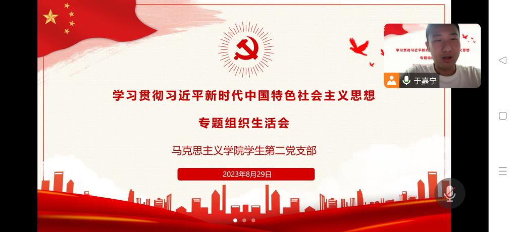 为积极贯彻落实校党委关于开展学习习近平新时代中国特色社会主义思想专题组织生活会的通知要求,8月29日晚上,德赢AC米兰官网学生第二党支部结合实际情况,通过腾讯会议召开学习贯彻习近平新时代中国特色社会主义思想专题组织生活会。学生第二党支部全体党员、预备党员参加会议,学生第一党支部书记高小佳同志参会并指导会议。会议由组织委员于嘉宁同志主持。