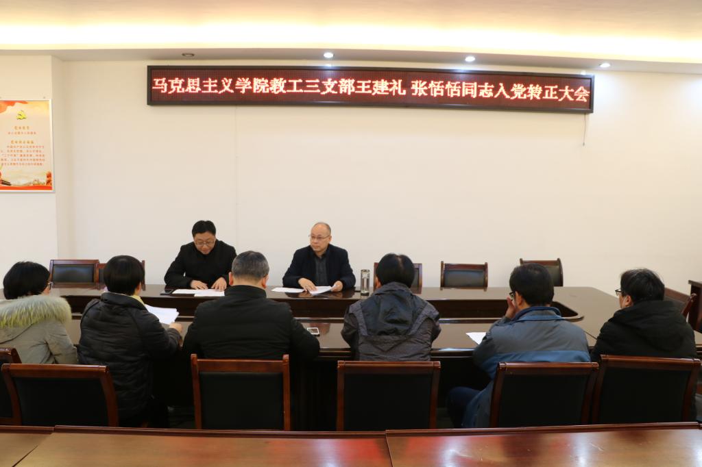12月10日下午,德赢AC米兰官网教工三支部在社科楼323会议室顺利召开入党转正大会。教工三党支部支部书记厉有国、正式党员周智、程晋富、郑波辉、李蕊、丁静、吴乐杨、郑晨霞,预备党员王建礼、张恬恬共同参加此次会议。会议由厉有国主持。