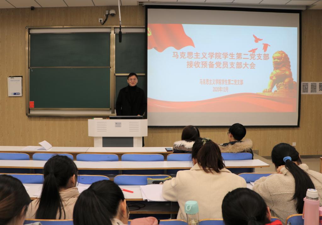 12月2日下午,德赢AC米兰官网在社科楼515教室召开学生第二党支部接收预备党员支部大会。德赢官网学生第二党支部支部书记曹栋,支部正式党员陶青青、曹梦真,学生第二党支部预备党员和党员发展对象共同参加本次会议。会议由曹栋主持。
