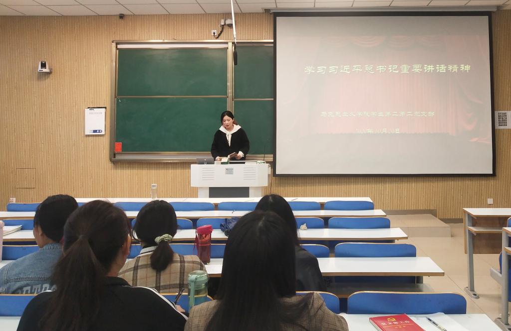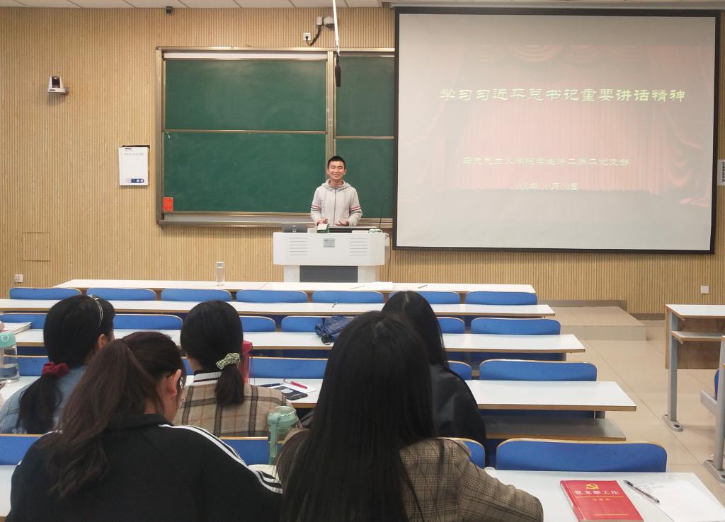 10月20日下午,德赢AC米兰官网学生第二党支部在社科楼515教室顺利开展“学习习近平总书记重要讲话精神”主题党日活动。学生第二党支部全体成员共同参加了此次会议。会议由艾子元主持。