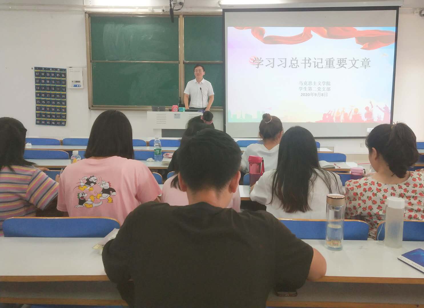 9月8日下午,德赢AC米兰官网学生第二党支部在社科楼514教室顺利开展“学习习总书记重要文章”主题党日活动。学生第二党支部书记曹栋、全体支部党员共同参加此次活动。会议由支部书记曹栋主持。