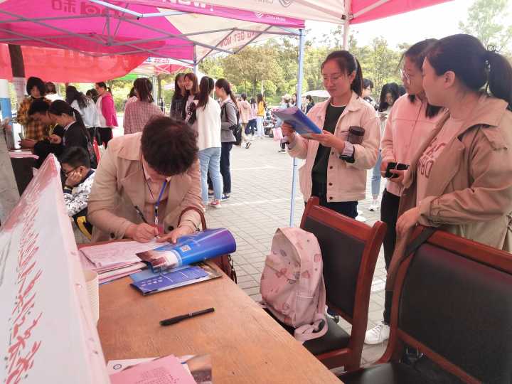 4月13日上午,河南省毕业生就业市场豫南分市场暨信阳师范学院2019届毕业生春季就业双选会在我校人文楼西篮球场举行。本次双选会由河南省教育厅、河南省大中专就业服务中心主办,信阳师范学院、信阳市人力资源和社会保障局共同承办。来自教育、文学、管理、销售、金融、建筑等行业领域的二百余家企业单位参加了招聘会,吸引德赢官网多名毕业生前来应聘。德赢官网团委老师曹菁菁到场了解企业用人情况、招聘情况。