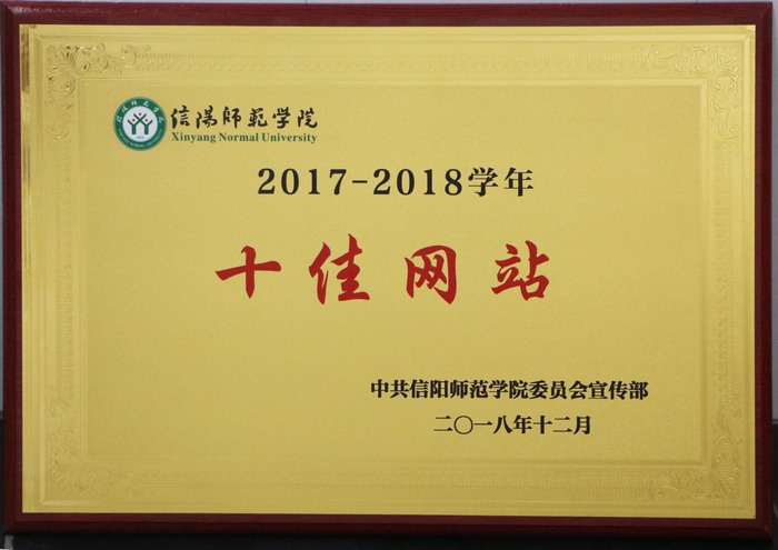 德赢官网网站获信阳师范学院2017—2018学年“十佳网站”荣誉称号