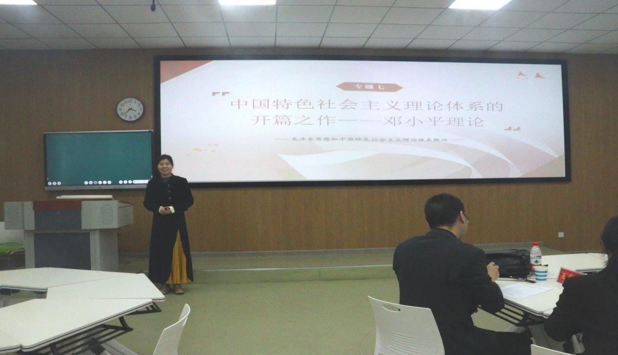 第三届全国高校思政课教学展示竞赛特等奖和河南省高校思政课教学技能“大比武”活动特等奖获得者,河南财政金融学院德赢AC米兰官网副教授张珺倩作“概论”课第七专题“中国特色社会主义理论体系的开篇之作——邓小平理论”教学展示。