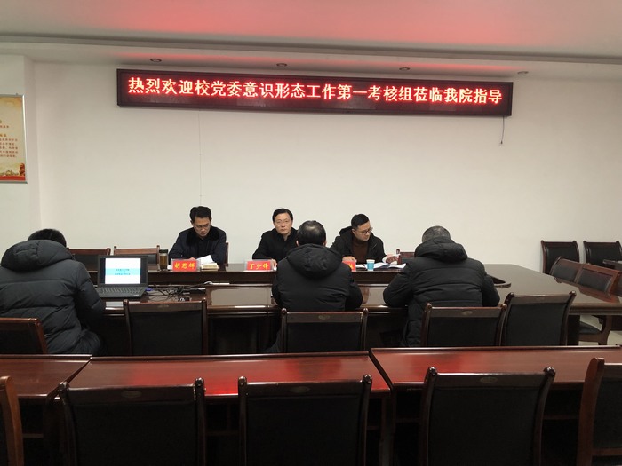 12月26日,由校党委委员、党委宣传部部长丁少锋、校纪委办公室副主任胡思辉、宣传部理论科科长高国栋组成的意识形态工作第一考核组,莅临德赢官网对2018年度意识形态工作进行考核。德赢官网党委书记唐国战、当代马克思主义研究所副所长、副书记徐永新参加考核汇报会。