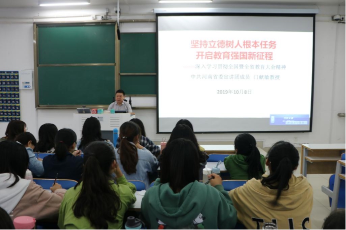 会上,门献敏以党中央在北京召开的全国教育大会为切入点阐明了中国共产党的先进性以及大会的划时代意义,他着重从如何学习贯彻全国教育大会意义、理解建设教育强国战略逻辑、把握教育强国内涵、如何坚持立德树人四个方面对如何深入学习全国教育大会精神作了详细阐述。接着,他分别从马克思与恩格斯、革命教育家、党的历代领导人三个角度为例深入浅出地对建设教育强国作出的贡献进行科学阐述,并引用“教育是国之大计、党之大计”向党员提出应不忘初心、牢记使命的中肯建议。最后,曹栋对本次党课进行总结,他希望全体学生党员及入党积极分子深入了解全国暨全省教育大会精神并积极学习党的相关理论,不断提高自身政治理论水平。(德赢AC米兰官网 燕凯旋 徐路佳/供稿)