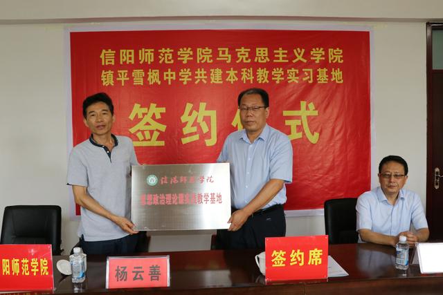 6月13日,信阳师范学院德赢AC米兰官网与南阳镇平一高中举行共建本科教学实习基地签约仪式。该校党总支书记魏书旭、校长李云杰等人出席会议。镇平一高以其先进的教育理念、现代化的办学条件、系统科学的学校管理、高水平的师资队伍和一流的教育教学质量,被社会各界赞誉为“豫西名校”。