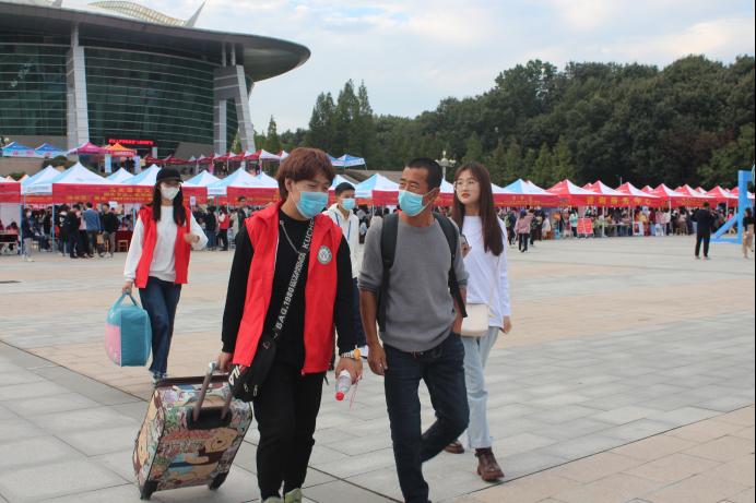 德赢官网领导老师高度重视本次迎新工作,亲自莅临现场指导工作,新生班级辅导员曹栋、陶青青全程参与迎新。在迎新现场,他们亲切慰问工作人员及志愿者,详细询问迎新工作进展,强调要注重疫情防控安全,佩戴好口罩。同时,他们与新生、家长亲切交流,了解新生情况,让同学们对自己未来的大学生活有了初步的认识与了解,充分体现了学院领导老师对迎新工作的重视和对新同学的关心。