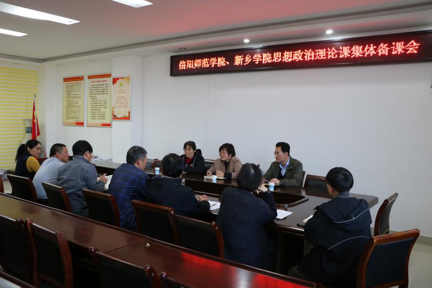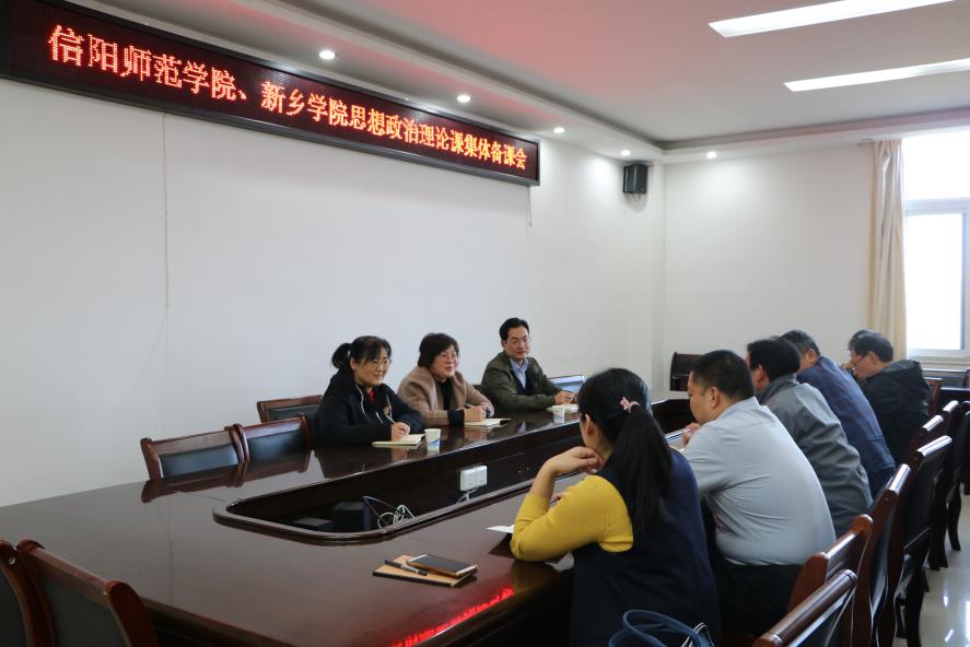 为进一步落实全省德赢AC米兰官网结对帮扶工作,11月10日下午,信阳师范学院和新乡学院《毛泽东思想和中国特色社会主义理论体系概论》《中国近现代史纲要》课程集体备课会在社科楼概论教研室召开。学院副院长周智、当代马克思主义研究所副所长徐永新、学院党委副书记何晓坚、“概论”教研室主任胡春湘,以及两校思想政治理论课教师代表刘新芬、周斌、孙金玲、陈杰、李桂红、王帆宇、曾帝参加备课会。