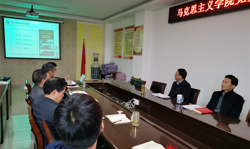 学院党委副书记徐永新传达了校党委书记王文鹏在校党史学习教育动员部署大会上的讲话,党委副书记何晓坚宣读了《德赢AC米兰官网2021年党史学习教育实施方案》。中国近现代史纲要教研室陈杰博士以“全面深入学习党史 汲取奋勇前进的智慧和力量”为题,从为什么学习中共党史、中共党史发展基本脉络、中共党史学习教育的历史特点和经验、当前党史学习教育的要求等四个方面,进行了系统阐释。