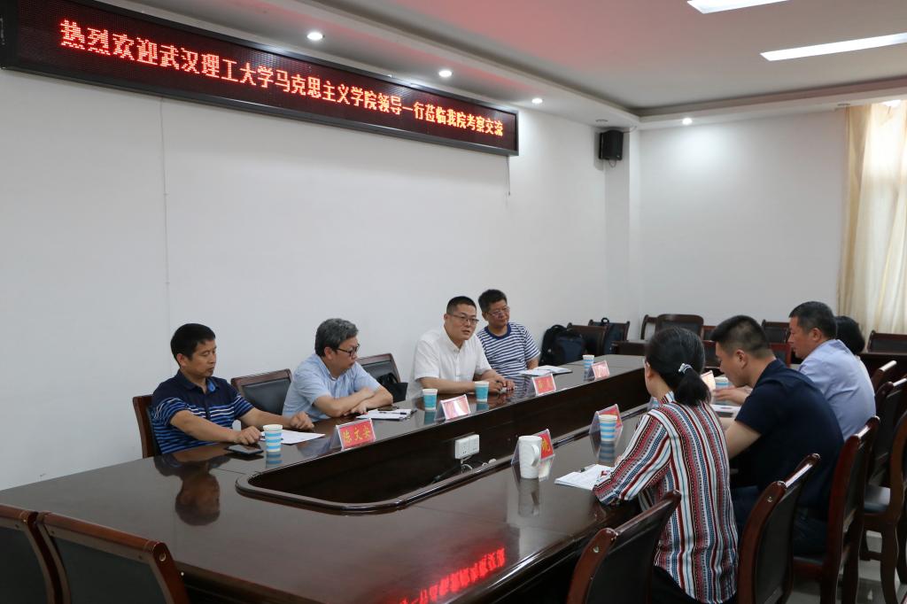 5月28日下午,武汉理工大学党委宣传部副部长、德赢AC米兰官网院长助理薛焱一行4人来德赢官网考察交流。德赢官网当代马克思主义研究所副所长兼党委副书记徐永新、当代马克思主义研究所副所长门献敏及相关教师出席交流会。交流会在社科楼323会议室举行,交流会由徐永新主持。