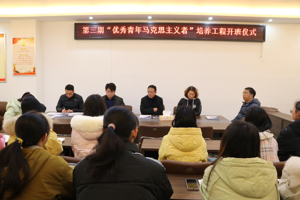 仪式伊始,唐国战介绍了“优秀青年马克思主义者”培养工程的相关情况。他指出,举办青马工程的目的在于为国家培养一批政治坚定、德才兼备,胸怀为国奉献之志的优秀青年马克思主义者。因此,他要求各位学员要深入系统的学习马克思主义理论知识,以坚定的马克思主义信仰指导实践。接着,第三期青马工程学员代表宋佳怡发言,她号召各位学员要增强“四个意识”,坚定“四个自信”,做到“两个维护”,将自己所学所获转化为成长的奠基石,为成为一名优秀的青年马克思主义者而不懈奋斗。最后,朱四倍宣布第三期青马培训班正式启动并发表讲话,希望学员们牢记初心使命,不辜负党的培育,不负时代,不负韶华,成为一个有高度、有格局、有作为的优秀青年马克思主义者。