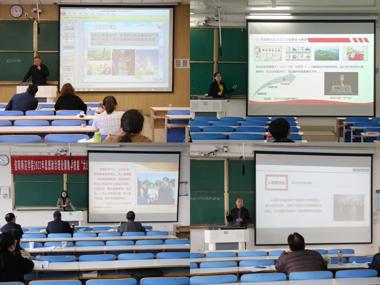 集中展示前,訾其伦介绍了本次活动的具体安排及评分细则,院长唐国战强调了活动开展的重要性并对活动提出了明确要求。全体思政课专兼职教师以教研室为单位分别在四个课堂进行集中展示。参加展示的共有5门本科课程,分别为思想道德修养与法治、马克思主义基本原理概论、毛泽东思想和中国特色社会主义理论体系概论、中国近现代史纲要、形势与政策和研究生课程《新时代中国特色社会主义理论与实践》。集中展示结束后,评委老师逐一对每位教师展示情况进行点评,分别指出优点与不足,以期进一步改进和提高。