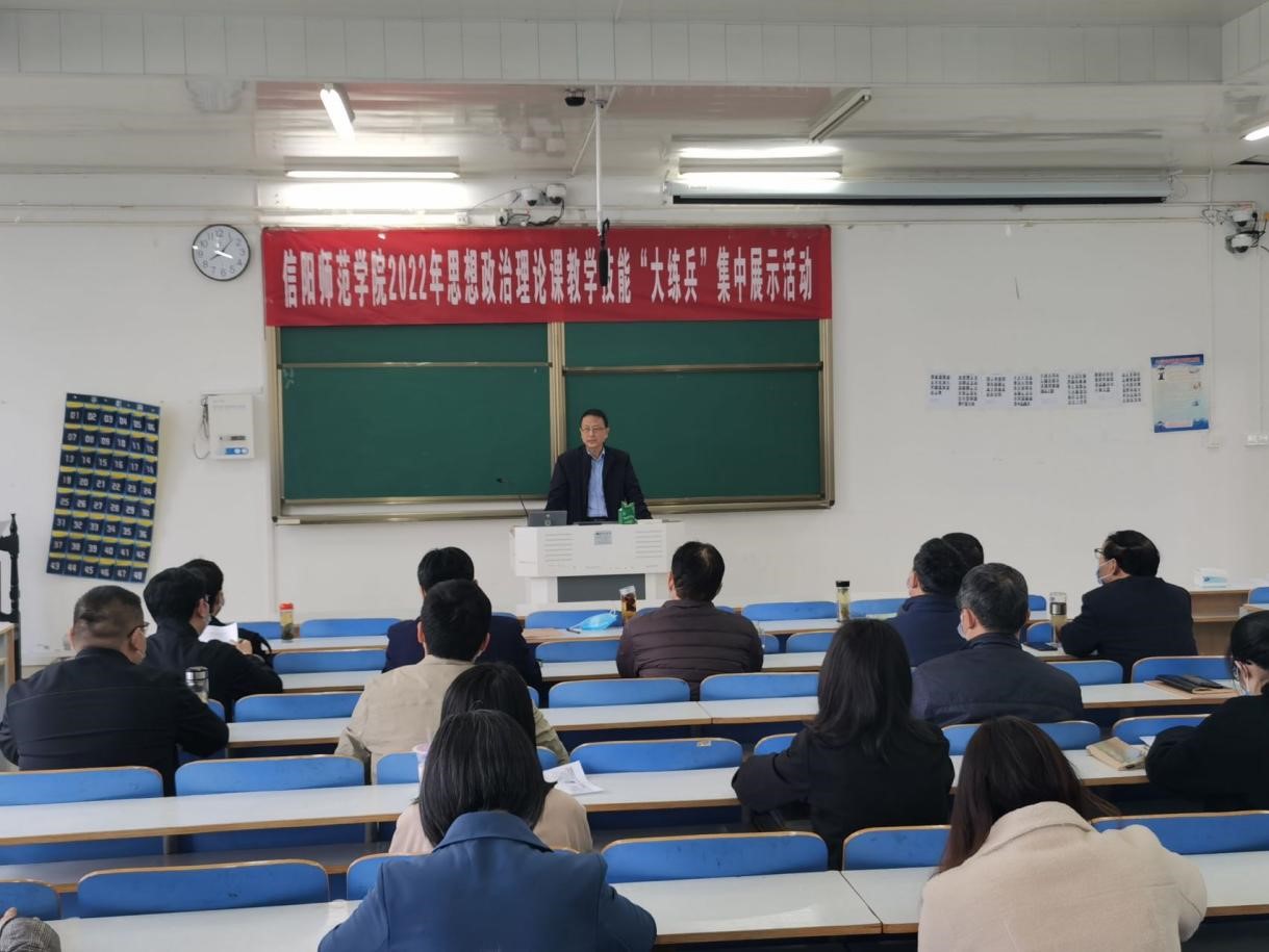 为进一步贯彻落实省教育厅和学校《关于开展思想政治理论课教学技能“大练兵、大比武、大展示、大提升”活动的通知》精神,切实提高我校思想政治理论课教学技能和水平,4月16日上午,德赢AC米兰官网在社科楼开展了“大练兵”阶段教学技能集中展示活动,全体思政课专兼职教师参加教学技能展示,学院党政领导班子成员和相关专家教授参加了评议活动,活动由副院长訾其伦主持。