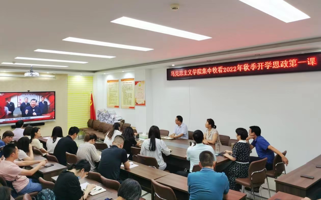 9月15日晚上,为深入贯彻习近平总书记关于“大思政课”建设的重要指示精神,由中共河南省宣传部、中共河南省委教育工委、河南省教育厅主办,河南农业大学和郑州大学承办的以“追寻足迹看我壮丽河山,牢记嘱托践行立德树人”为主题的2022年秋季开学思政第一课正式开讲。德赢AC米兰官网领导全体教师在社科楼323会议室进行了集中收看和学习研讨。