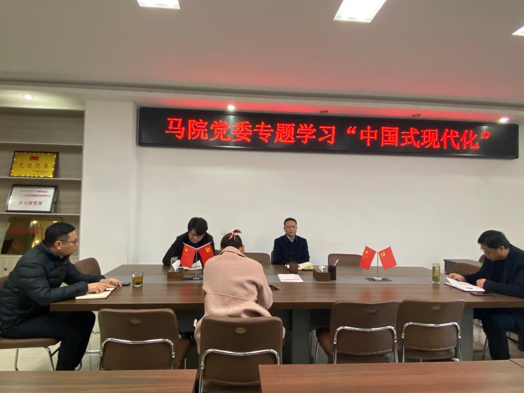 2月27日下午,德赢AC米兰官网党委在社科楼323会议室专题学习“中国式现代化”。学院党委书记朱四倍主持,学院党委委员参加了本次会议。