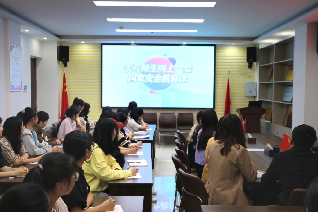 二、强化担当,提升实效,师生共同观看“千万师生同上一堂国家安全教育课”活动。德赢官网党委副书记黄煌、专职组织员任婷、专职辅导员沈海蓄、2022级辅导员以及部分学生代表在社科楼323会议室共同观看直播。课堂上,讲解员从国家安全的内涵出发,深入浅出地阐述国家安全的重要意义,以生动、鲜活的案例向高校师生展现维护国家安全的正确行为示范,教育引导广大师生树牢总体国家安全观,将国家安全意识转化为自觉行动,生动实践“国家安全,有你有我”。