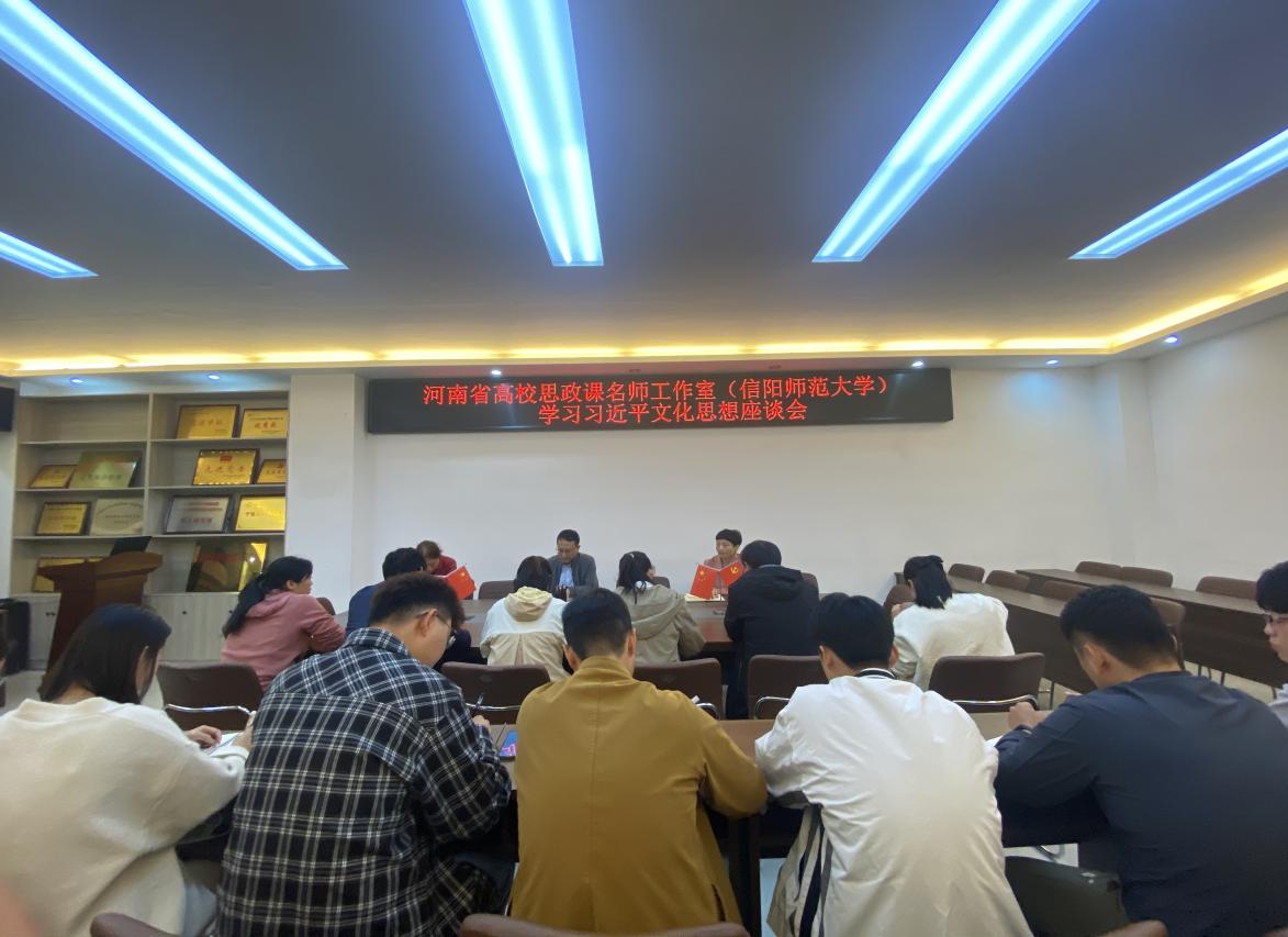 10月9日下午,河南省高校思政课名师工作室(信阳师范大学)在社科楼323会议室召开学习习近平文化思想座谈会。工作室成员和研究生代表参加会议。会议由工作室负责人唐国战教授主持。