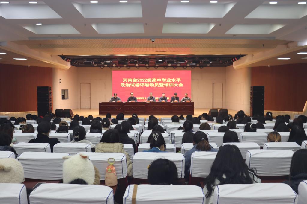 为贯彻落实《河南省普通高中学业水平考试实施办法》文件精神,加强评卷队伍建设、提高评卷质量,12月8日上午,德赢AC米兰官网在理科楼报告厅召开河南省2022级高中学业水平政治试题评卷动员暨培训大会。德赢官网党委书记李宝峰,院长唐国战,党委副书记黄煌,副院长周智、程晋富、訾其伦,学院和中学骨干教师以及评卷工作人员200余人共同参与此次大会。大会由副院长周智主持。