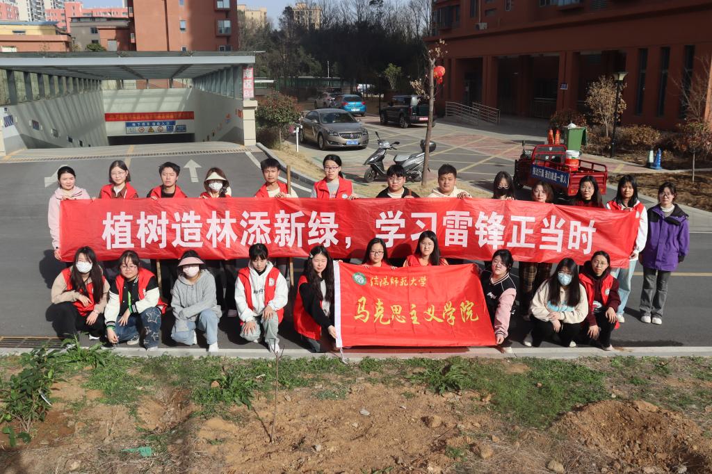 “植树造林添新绿,学向雷锋正当时”。3月19日下午,学院副院长周智,党委副书记黄煌,团委书记陶青青,辅导员沈海蓄带领学生代表前往社区开展学雷锋志愿服务活动。师生合力种植新绿,挥锹铲土、培土围堰、提水浇灌、扶树正苗,用雷锋精神和劳动教育的有机结合为青年学生跟随“雷锋”脚步,参与生态文明建设作出有益示范。