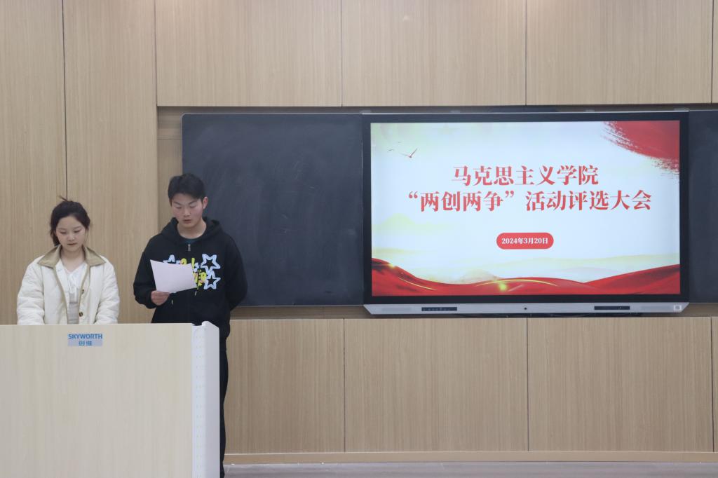 本次“两创两争”评选大会依次分为文明班级、文明学生、文明社团、文明寝室评选四个部分。会议肇始,2022级思想政治教育四个班的班长借助文稿、PPT等形式从思想建设、学风建设、素质培养、安全卫生四个方面展示班级的精神文明状况。其中,22级思想政治教育三班不断丰富班级特色,根据班级情况开展主题团日活动,把主题团日活动当作凝魂聚气、强基固本的重要抓手,极大提高了班级成员的政治觉悟与综合素质。随后,15名参与评选文明学生的同学依次上台发言,通过材料对学业成绩、自我能力、个人荣誉、政治素养进行总结。此外,德赢官网文明社团代表及文明寝室代表分别对自身工作进行梳理,提交相关材料,充分展现德赢官网学子争先向上的精神面貌。
