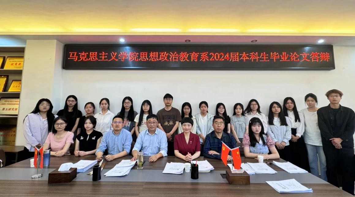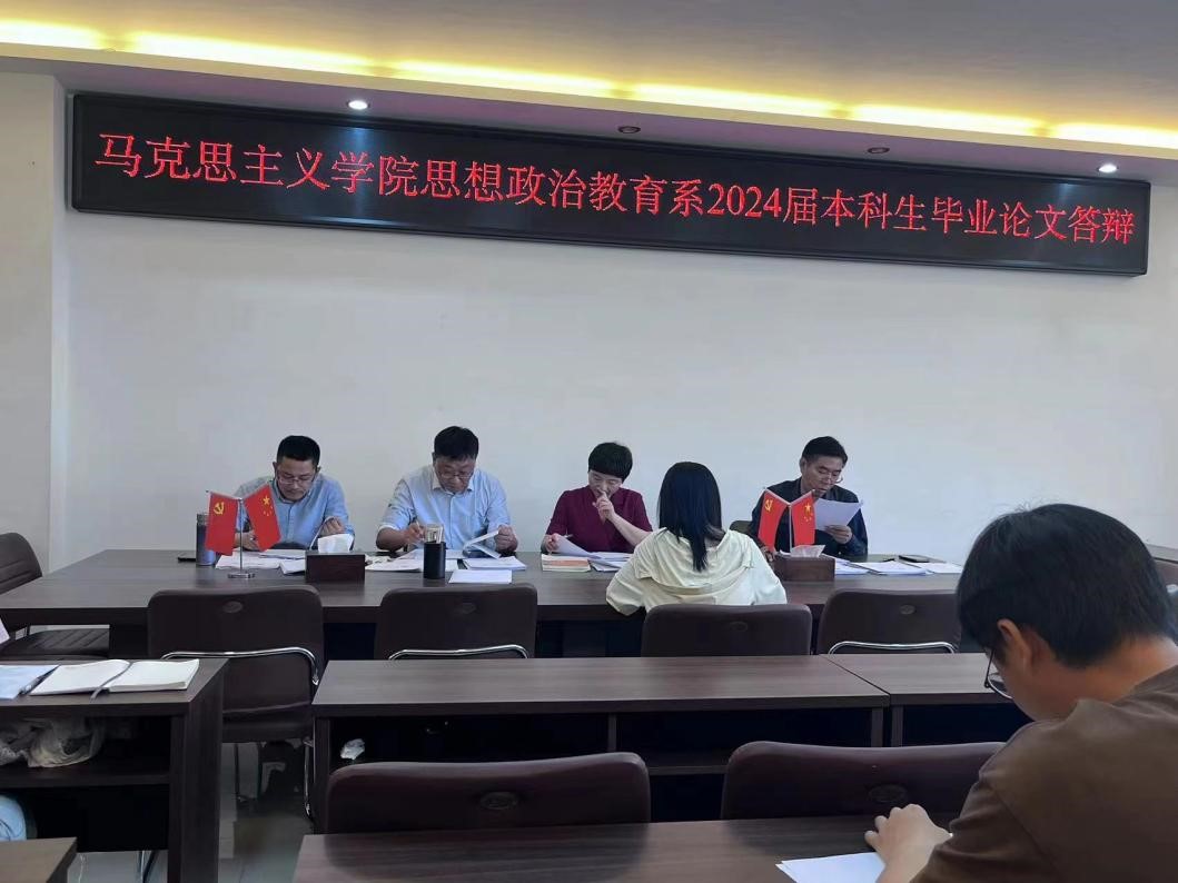 根据教务处《关于做好2024届本科毕业论文(设计)有关工作的通知》及《德赢AC米兰官网关于2024届思想政治教育专业本科毕业论文答辩工作的通知》要求,德赢官网思想政治教育系于2024年5月11日下午在社科楼323会议室进行2024届本科生毕业论文答辩会,答辩组由程晋富、李蕊、王建礼和蔡如军等老师组成,王建礼任答辩组组长,20名同学参加答辩。