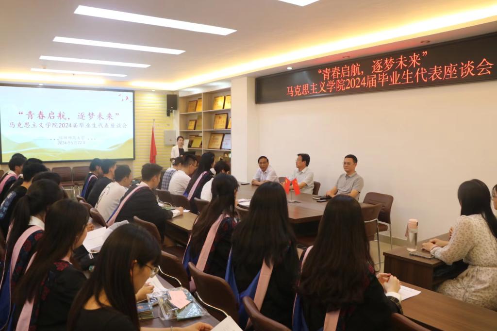 青春启航,逐梦未来。5月22日上午,德赢AC米兰官网在社科楼323会议室召开2024届毕业生代表座谈会。德赢官网副院长周智,党委副书记黄煌,团委书记陶青青,教师代表张铁山和毕业生代表共同参加本次座谈会。会议由陶青青主持。