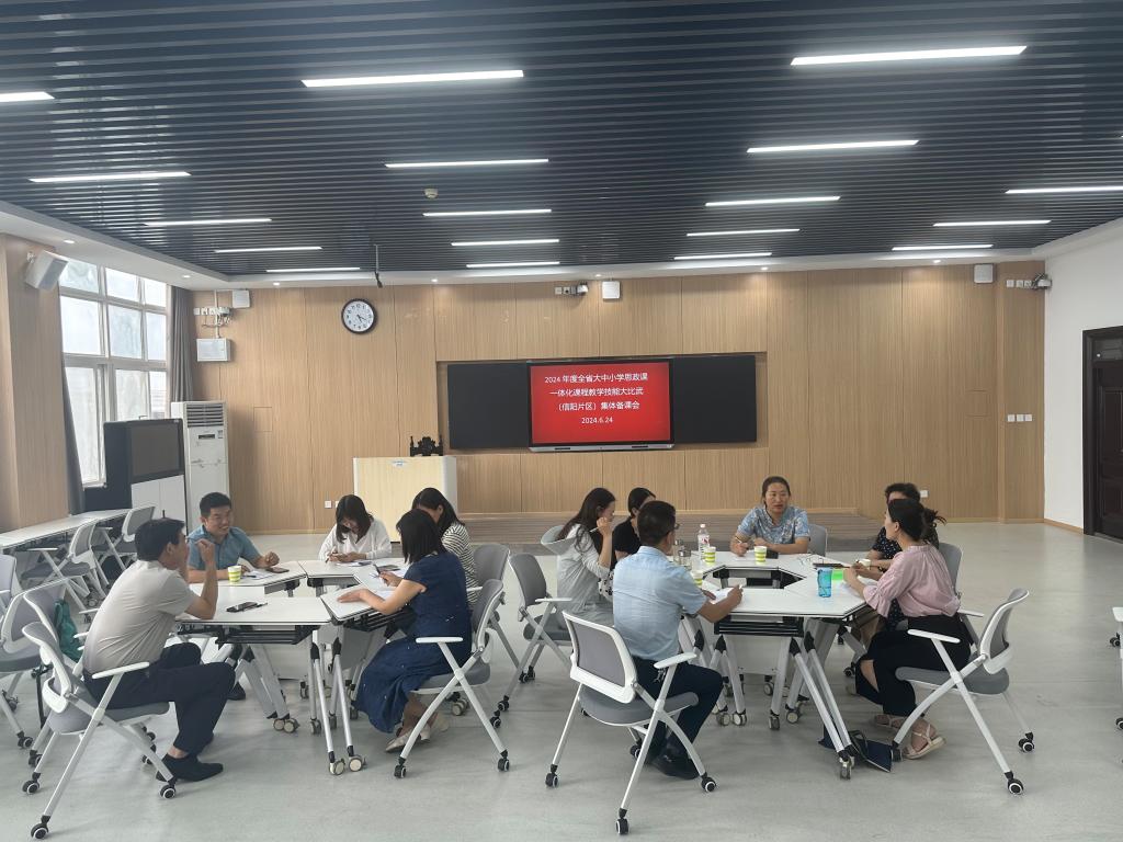 6月24日下午,信阳片区大中小学思政课一体化课程教学技能“大比武”集体备课会在信阳师范大学社科楼516举行。参加此次集体备课会的有部分信阳高校马院院长、市教体局思政科及市基础教育教研室部分专家和参赛选手。会议由德赢AC米兰官网副院长周智主持。