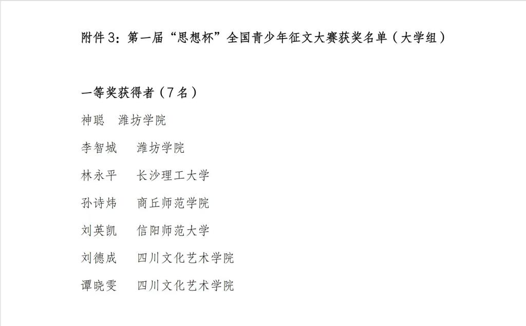 据了解,第一届“思想杯”全国青少年征文大赛由河南省青少年作家协会发起,旨在挖掘和传承中华优秀传统文化,培养青少年的历史文化素养和文学创作能力,同时为优秀文学人才培养和选拔搭建平台。大赛共收到参赛作品 2180 篇,评选出 1411 篇优秀作品,并决出了各奖项归属。(德赢AC米兰官网 贾傲雪 薛蒙蒙/供稿 王超 陶青青/审核)