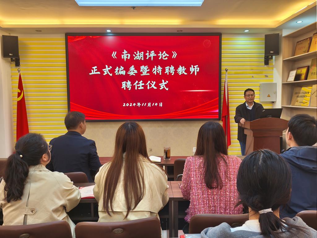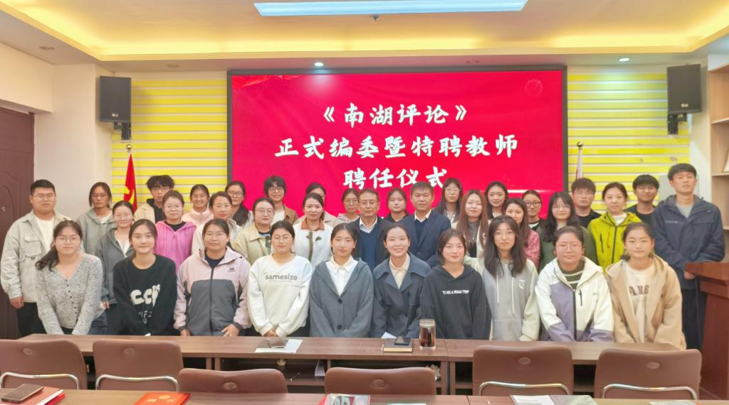 勇挑重担,逐梦不止。11月14日下午,德赢AC米兰官网在社科楼323会议室举行《南湖评论》正式编委暨特聘教师聘任仪式。德赢官网院长唐国战、党委副书记王超、特聘教师、2023级和2024级全体编委、优秀作者代表和各班代表共同参加仪式,仪式由责编卫青雨主持。