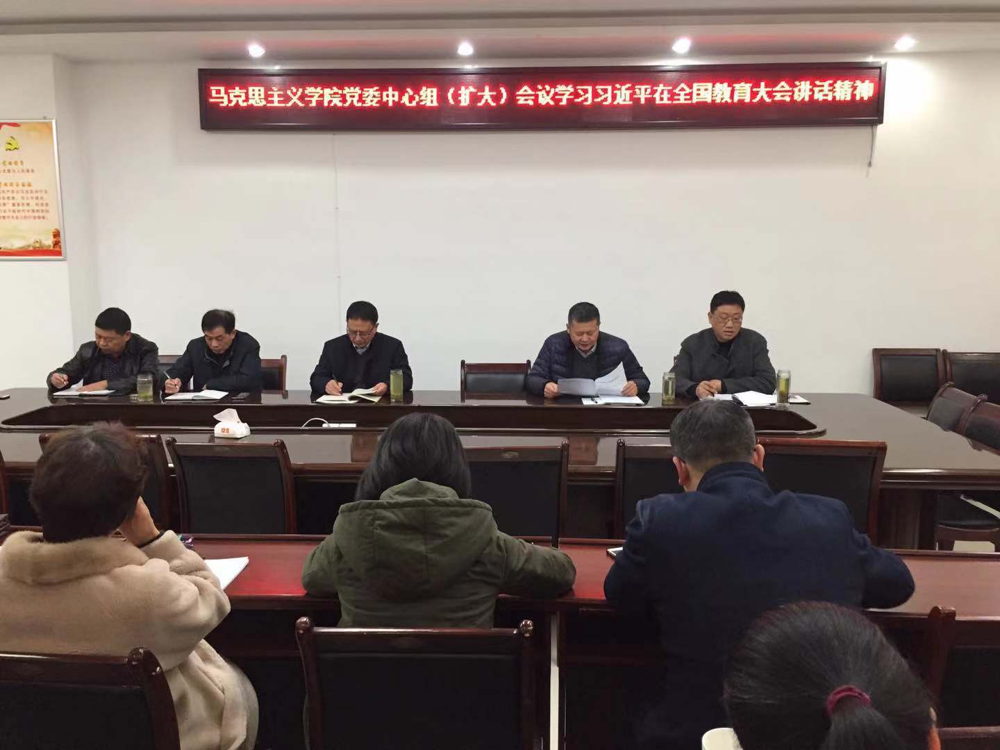 12月4日下午,德赢AC米兰官网在社会科学楼323会议室召开党委理论学习中心组学习(扩大)会议,传达学习全国教育大会精神尤其是习近平总书记在大会上的重要讲话精神,安排部署贯彻落实工作。全体教职工参加了本次会议。会议由学院党委书记唐国战主持。